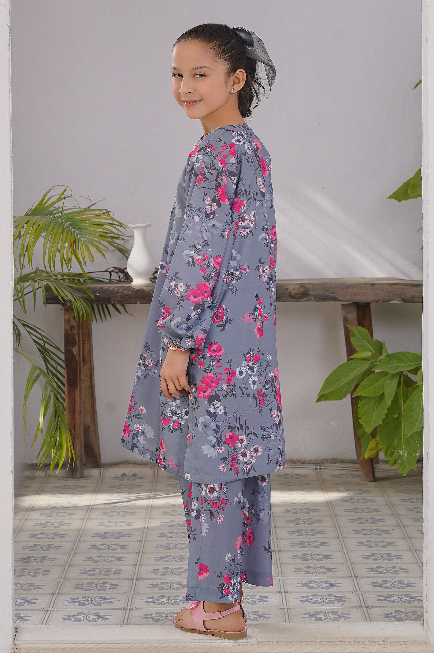 2 PC printed Swiss lawn suit for girls, girls lawn suit grey, kids lawn summer wear, floral lawn suit for girls, girls kurta trouser set, children Swiss lawn suit, girls ethnic wear, The Fairy’s Club kids collection, summer dresses for girls Pakistan.